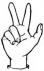 На ћирилици написано НЕВЕНА РУЧНОВ састоји се из 12 слова [?]. Исписано ћириличном једноручном азбуком за глувонеме:
